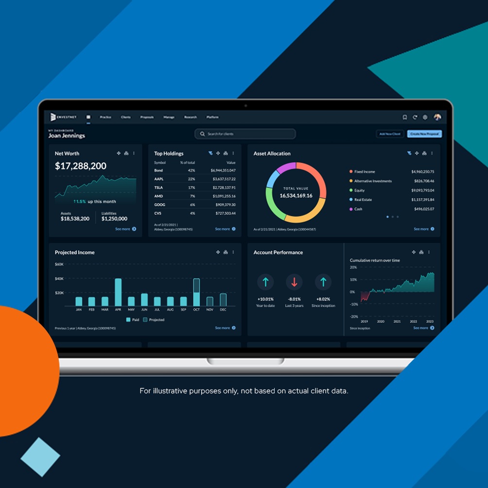 With Envestnet’s robust network of integration partners, you can easily create a holistic technology stack that simplifies your day-to-day and maximizes your value.